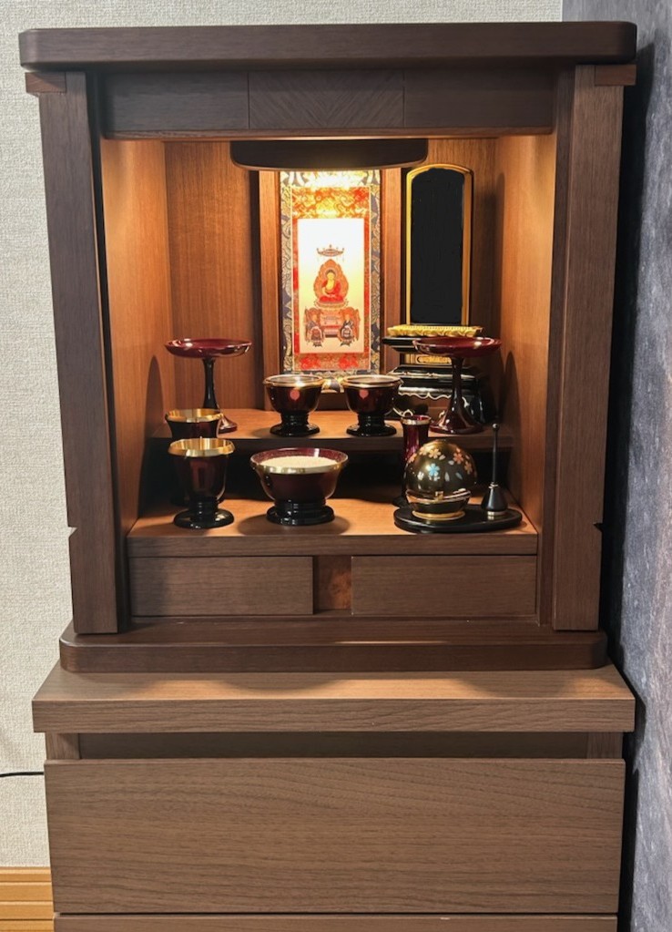 ウォールナット材のモダン上置仏壇を納品させていただきました。